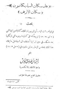 هل سكان السماء يكاتبون سكان الأرض؟،للأستاذ صادق إلياس