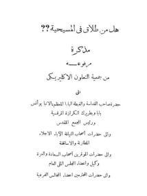 Book Title: : Is there a divorce in Christianity - a note filed by the Association for Seminary Cooperation to Pope Younes XIX The author: Saint Archideacon Habib Gerges Number of pages: 24 |