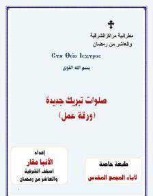 Book Title: : New Blessed Prayers - Worksheet - Special Edition for the Fathers of the Holy Synod The author: ANBA. MAQAR BISHOP OF EASTERN Number of pages: 50 |