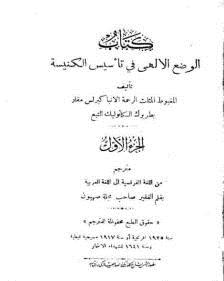 وصف كتاب "الوضع الالهى فى تأسيس الكنيسة، لكيرلس مقار – ترجمة – الأنبا ايسوذورس – أول اسقف لدير البرموس"