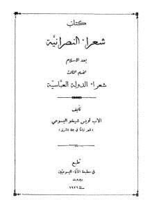 وصف "شعراء النصرانية بعد الأسلام – الجزء الثالث – شعراء الدولة العباسية، للأب لويس شيخو اليسوعي "