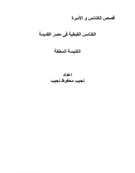 اسم الكتاب: الكنائس القبطية فى مصر القديمة كنيسة السيدة العذراء المعلقة المؤلف: الأستاذ نجيب محفوظ نجيب عدد صفحات الكتاب: 6 |