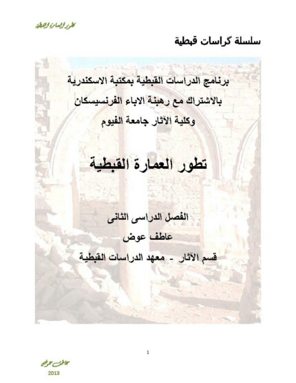 اسم الكتاب: المؤثرات المصرية القديمة في العمارة القبطية المؤلف: المهندس عاطف عوض عدد صفحات الكتاب: 54 |