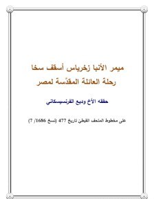 ميمر الأنبا زخرياس أسقف سخا – رحلة العائلة المقدسة لمصر ، الاخ وديع الفرنسيسكاني